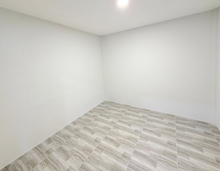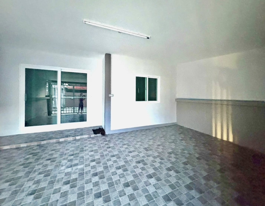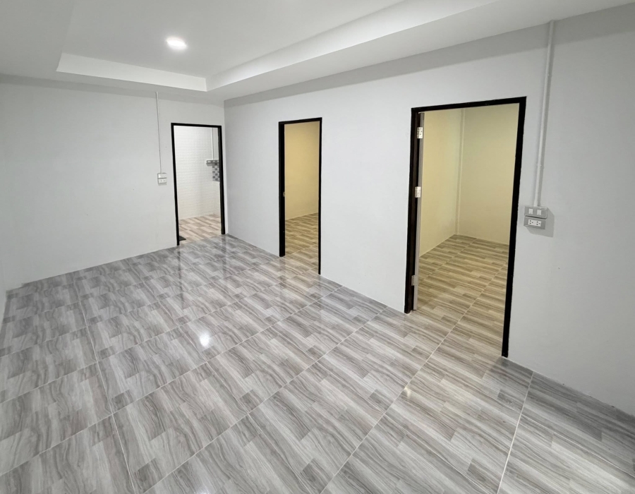 เป็นทาวน์เฮาส์ชั้นเดียว พื้นที่ 18 ตร.ว. 2 ห้องนอน 1 ห้องน้ำ 1 ครัว 1 โถง 1 จอด