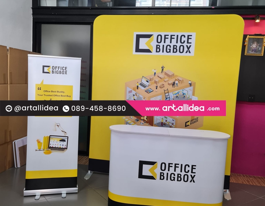 อุปกรณ์ออกบูธสินค้า บูธสำเร็จรูป แบบพับเก็บได้ ป้ายโฆษณาต่าง ๆ และป้ายออกบูธ สำเร็จรูปมากมาย