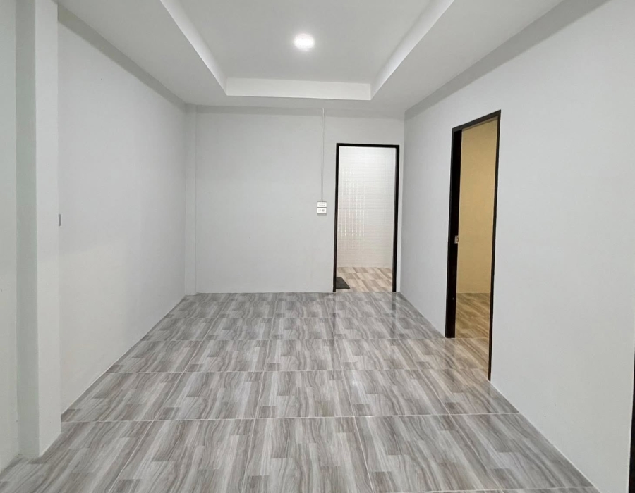 เป็นทาวน์เฮาส์ชั้นเดียว พื้นที่ 18 ตร.ว. 2 ห้องนอน 1 ห้องน้ำ 1 ครัว 1 โถง 1 จอด